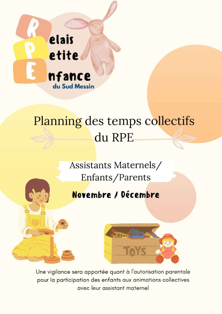 Pour consulter le "Planning du Relais Petite Enfance, planning des temps collectifs" pour les mois de Novembre et Décembre 2025